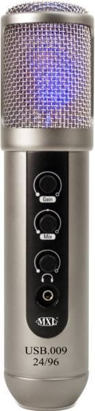 MXL 009 to mikrofon pojemnościowy o charakterystyce kardioidalnej. Zastosowano tu wielkomembranową kapsułę ciśnieniowo-gradientową [32 mm] z pozłacaną membraną. Nową jakością są przede wszystkim 24-bitowe przetworniki pracujące z niespotykaną do tej pory częstotliwością próbkowania do 96 kHz! Kapsuła jest chroniona przez wytrzymały metalowy grill, który jest podświetlany niebieską diodą LED informującą o aktywności mikrofonu oraz jego prawidłowym ustawieniu względem źródła dźwięku. Na matowo szarym korpusie odnajdziemy trzy analogowe pokrętła Gain, Mix i Headphones Level ułatwiające uzyskanie optymalnego brzmienia oraz wyjście słuchawkowe [Headphones Output], zapewniające zerową latencję podczas odsłuchu [np. głosu lektorskiego].