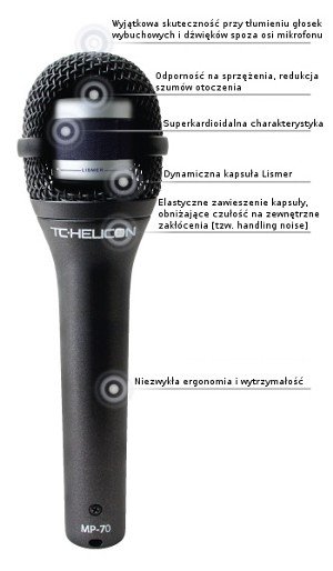 Tylko w teorii, w praktyce MP-70 to niebagatelny mikrofon tworzony od podstaw z myślą o współczesnym wokaliście. W dynamicznym mikrofonie o superkardioidalnej charakterystyce, kapsułę Lismer umieszczono w taki sposób by jak najlepiej wytłumić dźwięki spoza osi oraz wyeliminować sprzężenia. Membranę wykonano z dwóch rodzajów materiałów, co pozwoliło uzyskać optymalną charakterystykę przenoszenia zarówno na niższych jak i wyższych częstotliwościach. Nowy mikrofon charakteryzuje się pasmem przenoszenia