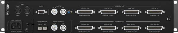 - Wejście AES/EBU: 32 x, 4 na złącze D-SUB, symetryzowane transformatorowo, duża czułość wejściowa [< 0,3 Vpp], zgodne z S/PDIF,