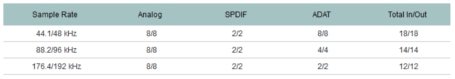 Sygnał zegarowy: Internal, ADAT In, SPDIF In, Word Clock In.,