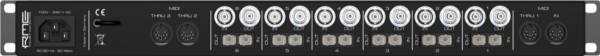 Płyta tylna MADI Bridge jest przejrzysta i uporządkowana. Zawarto na niej sześć koaksjalnych wejść i wyjść BNC, sześć wejść i wyjść optycznych, wejście MIDI i trzy gniazda MIDI Thru, które zapewniają ogromną elastyczność i kompatybilność.