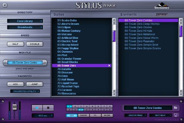 Tworzenie dynamicznych, nowoczesnych bitów, dostęp do nieograniczonych bibliotek sampli, loop'ów, precyzyjna i bezproblemowa współpraca ze wszystkimi znanymi aplikacjami audio w tym: Samplitude, Cubase, Apple Logic, Pro Tools, Ableton Live, Cakewalk Sonar - to właśnie jest Spectrasonics STYLUS RMX. Ta wirtualna maszyna przenosi koncepcję kontroli tępa pętli rytmicznych w zupełnie inny wymiar. Możemy dowolnie zmieniać tempo odtwarzania próbek bez uszczerbku dla ich brzmienia.