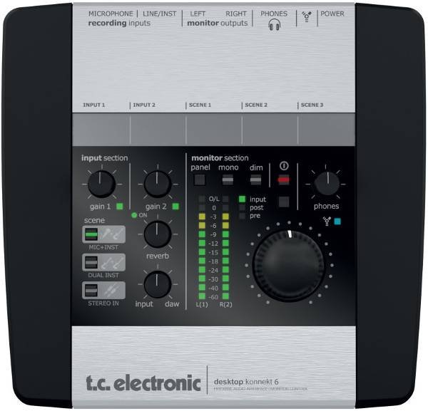 Desktop Konnekt zapewnia studyjną jakość nagrywania gitar, dzięki zastosowaniu tego samego przetwornika na wejściu, jaki stosowany jest w wysokiej klasy procesorach gitarowych TC. Te dwa wysokoimpedancyjne wejścia zapewnią gitarze należytą jakość brzmienia i dźwięku.